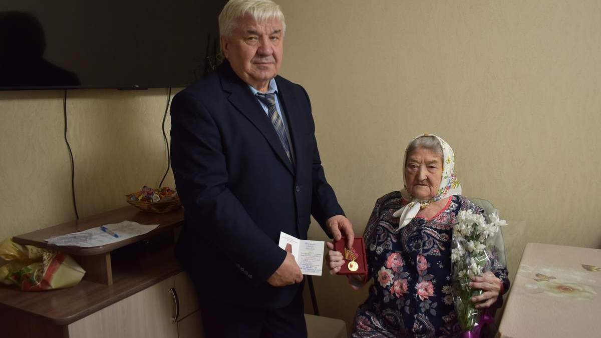 Труженице тыла Марии Петровне Шиловской из села Пустополье Шиловского района глава администрации Задубровского сельского поселения Николай Зайцев вручил юбилейную медаль «80 лет Победы в Великой Отечественной войне 1941–1945 гг.»