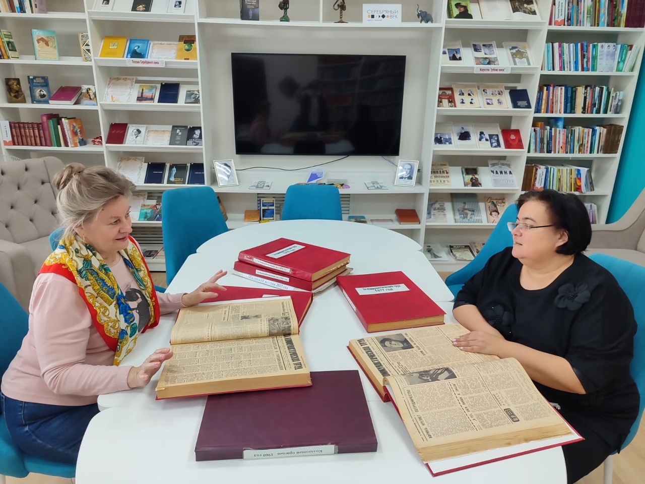 Встреча прошла в читальном зале, на столе – подшивки районных газет разных лет, в них – история края в лицах и событиях. Раньше издание было единственным источником районных новостей, сегодня у него серьезная конкуренция – электронные СМИ, соцсети. Тем не менее газета жива, ее читают.