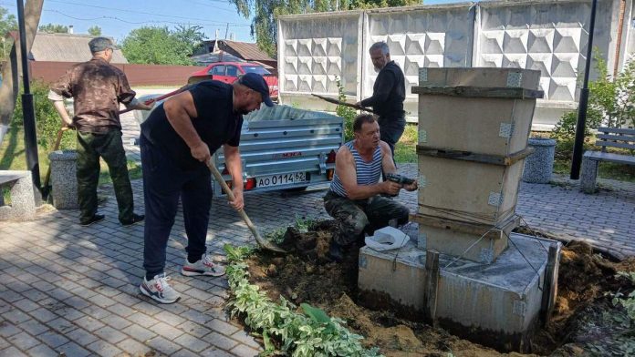 Инициативу ветеранов-десантников поддержали казаки общества «Добрыня Шиловский», общественные организации района. Место выбрали не случайно, именно здесь в День ВДВ собираются ветераны-десантники, чтобы пообщаться, вспомнить годы своей службы, друзей. Постамент устанавливают активные представители казачества и ветераны-десантники.
