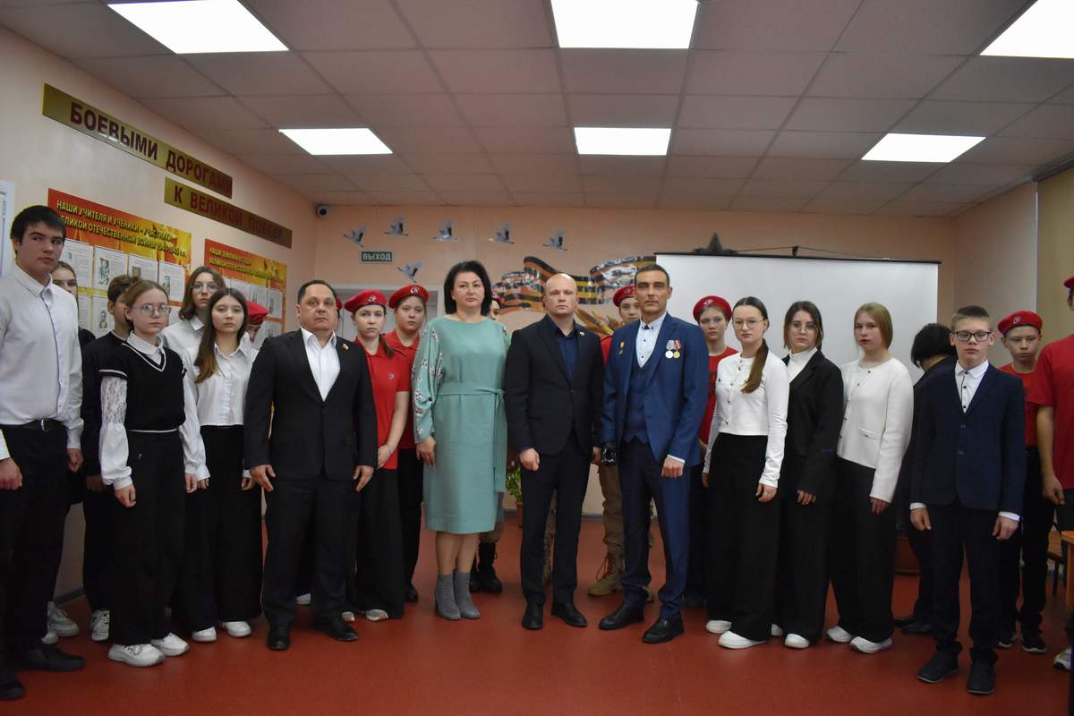 На встрече присутствовали родные и близкие участников СВО: Галина и Сергей Кусовы, Марина Козырева, Вера Орехова, Елена Луппова, Олеся Широкова, Валентина Савельева, Наталья и Евгения Пивень. О мерах государственной, региональной и муниципальной социальной поддержки участников СВО и их семей рассказали: уполномоченный по правам человека Рязанской области Наталья Епихина; руководитель региональной ассоциации ветеранов СВО, депутат Рязанской областной Думы Роман Иголкин, представитель штаба общественной поддержки партии «Единая Россия» Татьяна Голованова; первый заместитель главы администрации района Людмила Агафонова; начальник отдела социальной защиты населения по Путятинскому и Шиловскому районам ГКУ РО «Управления социальной защиты населения Рязанской области» Вера Матросова и другие. Разговор шел о социальных выплатах, оказании адресной помощи семьям участников СВО, мерах юридической и психологической поддержки, о работе реабилитационных центров, оздоровительных лагерей для детей военнослужащих. Далее участники встречи участвовали в открытии фотовыставки проекта «Наследники победителей», на которой были представлены 13 портретов ветеранов специальной военной операции, держащих в руках фотографии своих дедов и прадедов, воевавших на фронтах Великой Отечественной Войны. Роман Иголкин провел для учеников школы урок мужества и рассказал о подвигах рязанцев и шиловцев – Героев Советского Союза и России.