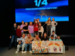 На сцене Рязанского Дворца молодёжи прошли игры 1/4 юниор-лиги Рязанской области. В играх участвовали одиннадцать 11 молодых ярких команд, среди них – команда КВН Шиловской общеобразовательной школы № 1 «Первая и точка».